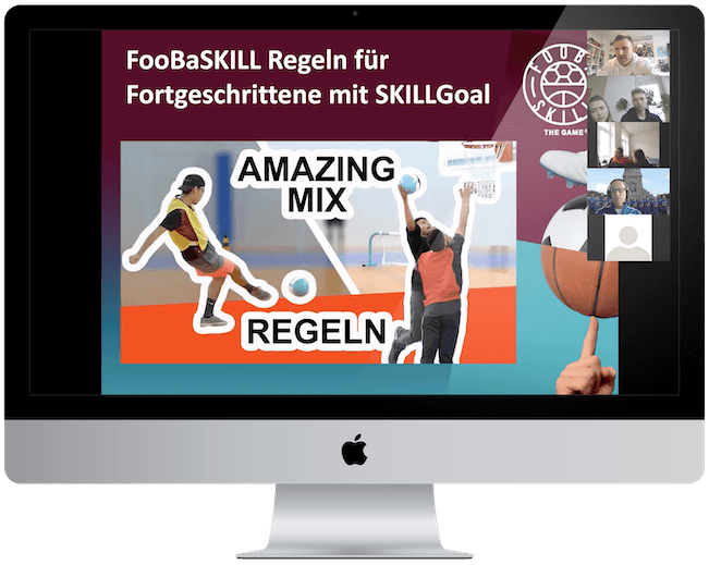 SKILLTheBall is the official game ball for FooBaSKILL. This crossover ball is distinguished by its hybrid composition and its multiple use. This ball consists of a combination of 8 basketball panels (rough texture) and 12 soccer panels (smooth texture).